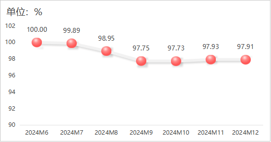 2024年12月,花出产品价钱指数维稳运转,指数值为97。91点,较11月下降0。02个百分点。具体运转环境如下图所示:
