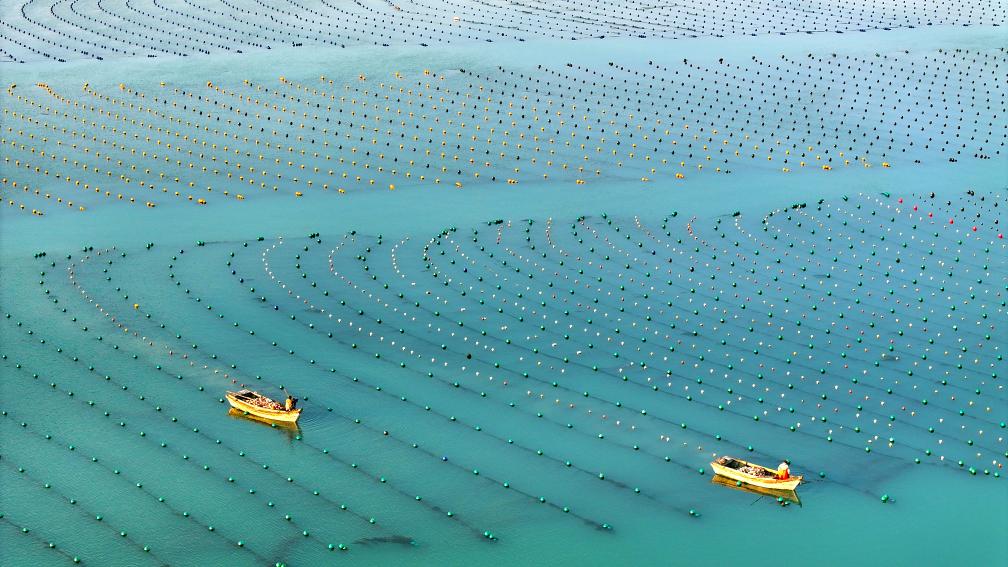 ■正在荣成市,海洋牧场的养殖工人驾驶养殖船开展海带春管、贝类养殖、浮漂改换等海上出产功课,呈现出一派“海上春耕”的忙碌气象。