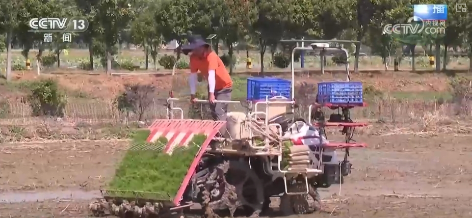 这里种植的是一种两收的再生稻,这里进行了最初一片再生稻的插秧工做。无人驾驶的插秧机正正在功课,只需要农技人员放置秧盘,秧苗就可以或许划一地种好。这片田若是用保守人工插秧,需要9小我干一天才能干完。现正在,无人插秧机只需要1小时就能搞定,这也便利了小鸭子们的奔驰。