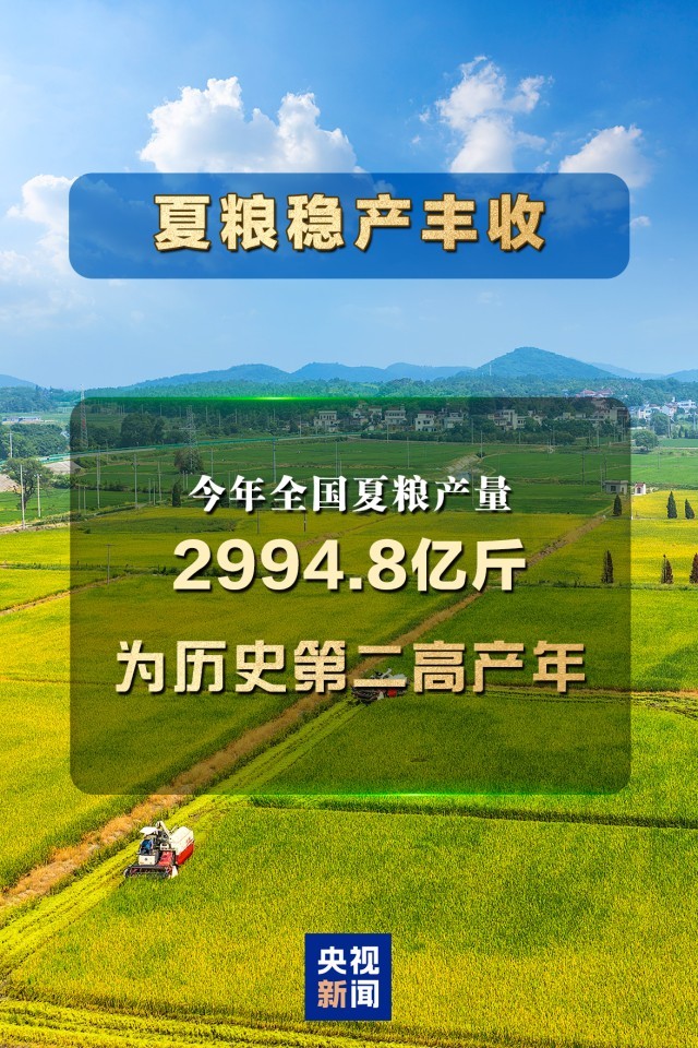 夏粮出产降服局部地域较沉旱情影响,实现稳产丰收,为不变全年粮食出产奠基了根本。据国度统计局数据,全国夏粮产量2994。8亿斤,是仅次于客岁的汗青第二高产年。早稻目前收成六成摆布,丰收正在望。秋粮面积估计稳中略增,长势一般偏好。夏油面积、单产、总产实现“三增”。