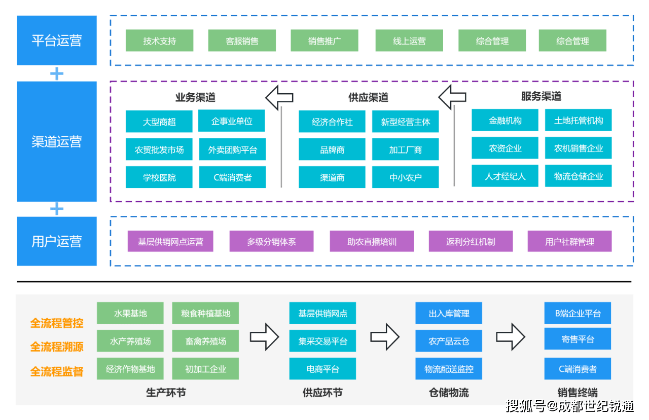 出力建立 “平台 + 渠道 + 用户” 多层级一体化运营系统,深度聚焦 “出产 - 供应 - 仓储物流 - 发卖终端” 全流程,实施严酷监管行动。借帮这一系统,实现自上逛至下逛的全方位,告竣全链条、无死角的笼盖式精细办事,为农业财产稳健成长建牢根底。